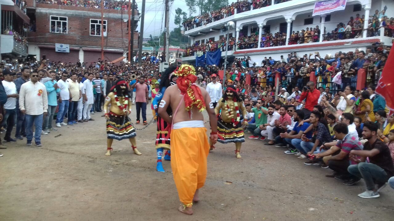 पिथौरागढ़ में बुधवार को ‘हिल-जात्रा’ मनाई गई. यह एक ख़ास आयोजन है जो कि सिर्फ़ पिथौरागढ़ में ही मनाया जाता है. आठूँ-सातूँ पर्व के आठ दिन बाद हर साल हिलजात्रा मनाई जाती है जिसमें कलाकार लकड़ी के मुखौटों और अन्य रंग रोगन के ज़रिए अलग अलग पात्रों का वेश बनाते हैं और नृत्य नाटिका होती है. यह अभिनय, स्वांग और रोमांच का उत्सव है जिसमें पहाड़ी कृषि प्रधान समाज की छाया दिखाई देती है.