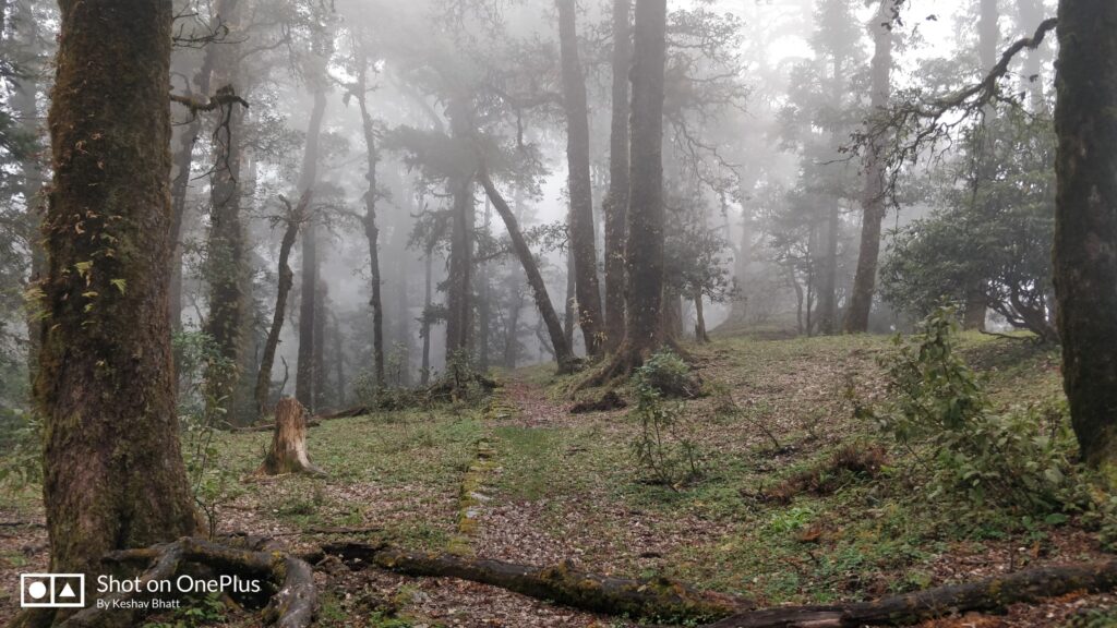 नीचे बुरांश के झुरमुट के जंगल से हमारे वापस आने तक राजूजी भी जागृत अवस्था में मिले. मन की शंका को दूर करते हुए उन्होंने बताया, “रात्रि में दो बजे के बाद का समय ध्यान के लिए उत्तम होता है. अकसर इस तरह का ध्यान सात घंटे तक का होता है, आज कम ही किया.” हम दोनों हैरान थे. ध्यान के लिए हम कितना ही कोशिश करते लेकिन दसेक मिनट बाद ही जिंदगी की झंझावतें रंग बिरंगे मुखौटे लगाए आंखों के आगे नाचने लग जातीं.