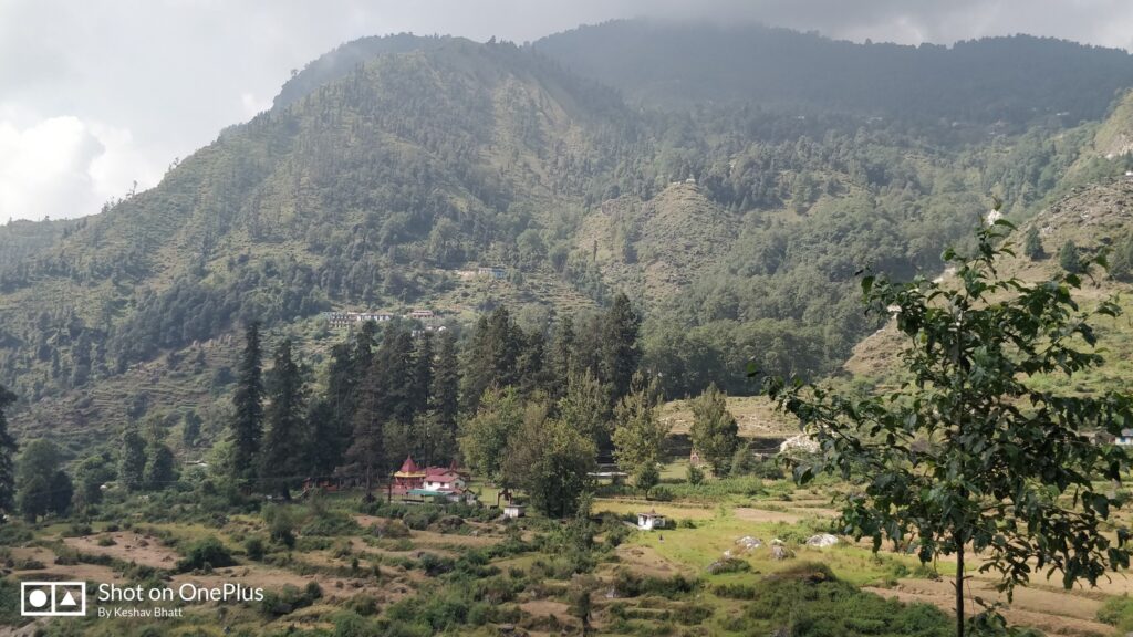बलखाते रास्ते के किनारे एक जगह पानी का साफ स्रोत मिला. बोतलों को भर लिया गया. कुछ पल बाद ही हम चिल्ठा मंदिर के बगल में बनी धर्मशाला में पहुंच गए. राजू और उसके साथियों ने हमसे विदा ली और धाकुड़ी-भगदाणु वाले रास्ते की ओर हिरनों की भांति कुलांचे भरते हुए निकल गए.