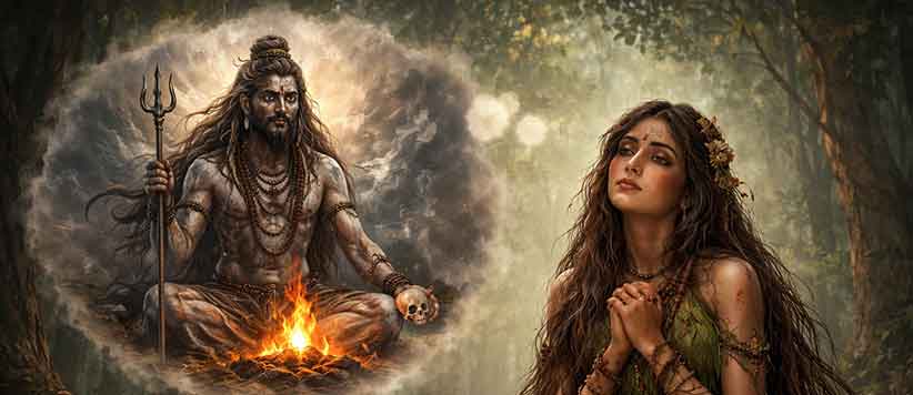 हिमालय की गोद में राजा हिमवान और रानी मेना के यहाँ जन्मी पार्वती बचपन से ही शिव को अपने आराध्य के रूप में देखती थीं. शिव कैलाश के योगी थे, भस्म से विभूषित, जटाओं में गंगा धारण किए और संसारिक वैभव से दूर. राजमहल में पली पार्वती के लिए यह मार्ग सहज नहीं था, फिर भी उनके मन में एक ही संकल्प था कि वे शिव को ही पति रूप में स्वीकार करेंगी. जब उन्हें ज्ञात हुआ कि शिव को प्रसन्न करने के लिए कठोर तप करना होगा, तब उन्होंने सुख सुविधा छोड़कर हिमालय की निर्जन स्थली में साधना आरंभ की. पहले उन्होंने अन्न त्यागा, फिर केवल फल पर रहीं और धीरे धीरे पत्तों का सेवन भी छोड़ दिया. इसी कारण उन्हें “अपर्णा” भी कहा गया, जो पत्ता पर्ण भी न ग्रहण करे. यह नाम उनकी तपस्या और अडिग निश्चय का प्रतीक बन गया.