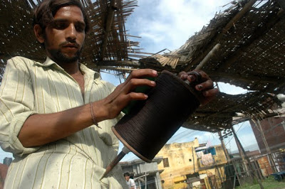 मांझे के तैयार हो जाने के बाद उसे बांस की बनी घिर्रियों में लपेटा जाता है. यह काम भी काफ़ी मशक्कत वाला होता है और इसमें हथेलियां छिल जाया करती हैं. आखिरकार मांझे की ये ये घिर्रियाँ थोक और फुटकर में बेचे जाने के लिए दुकानों पर राखी जाती हैं. काफल ट्री के साथी फोटो-पत्रकार रोहित उमराव ले कर आ रहे हैं आपके वास्ते मांझे की कहानी –